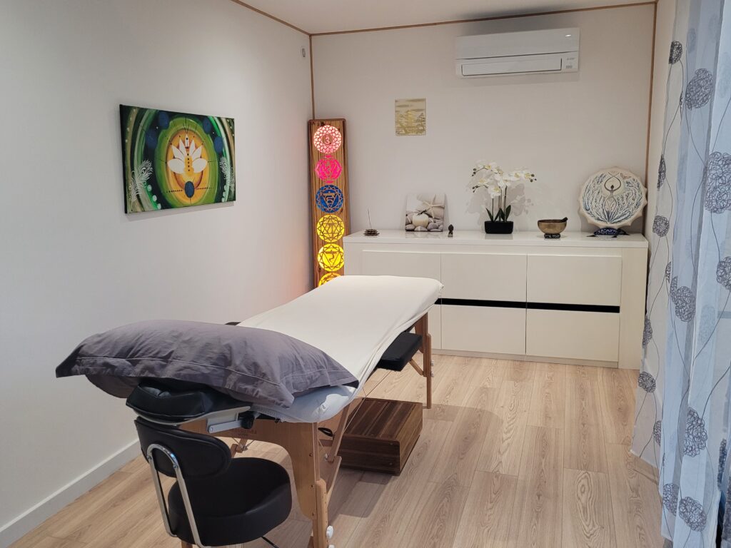 Vous vous allongez confortablement sur la table de soin, tout en restant habillé(e) et vous vous détendez pendant que j’effectue le soin énergétique.